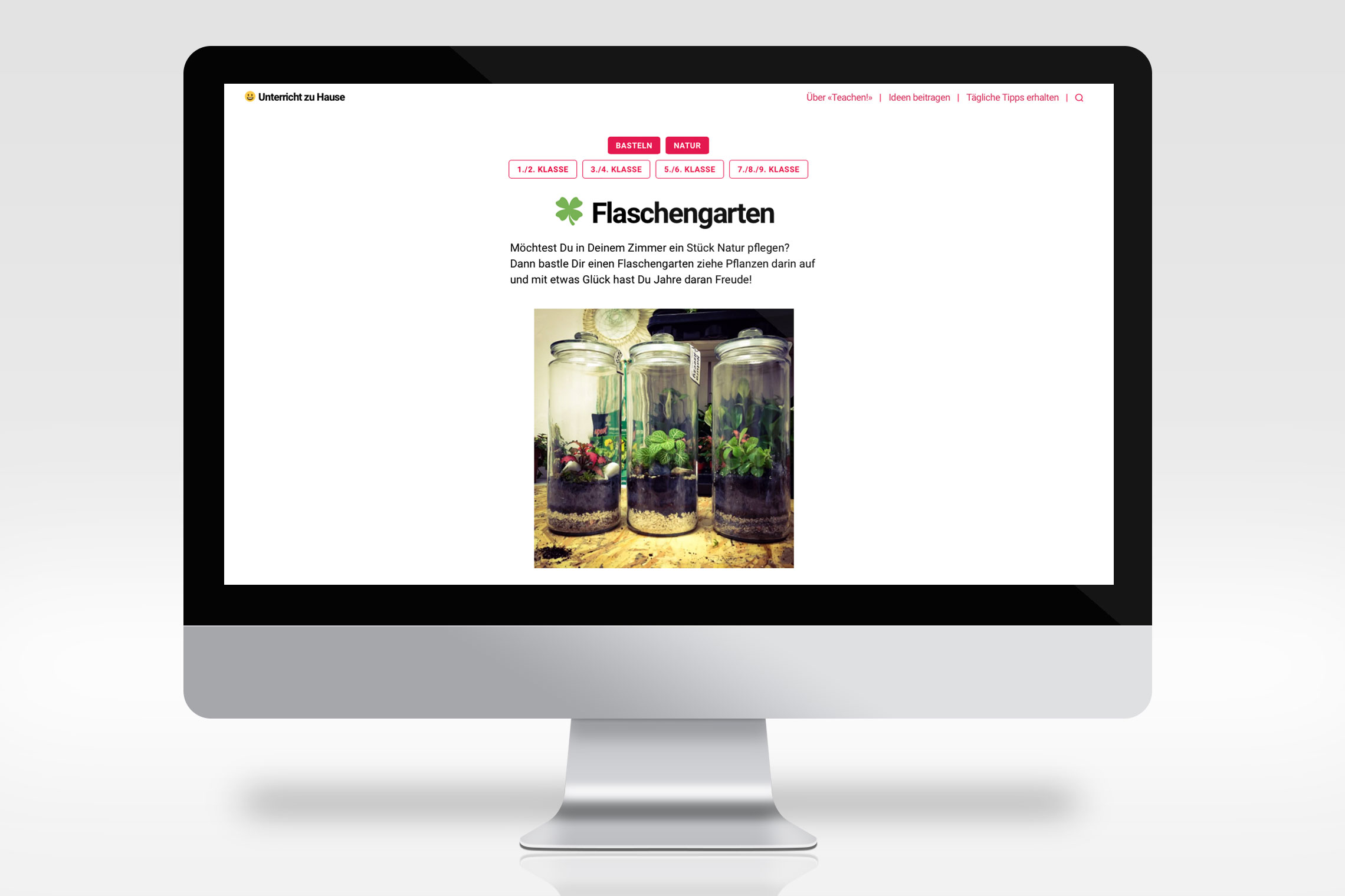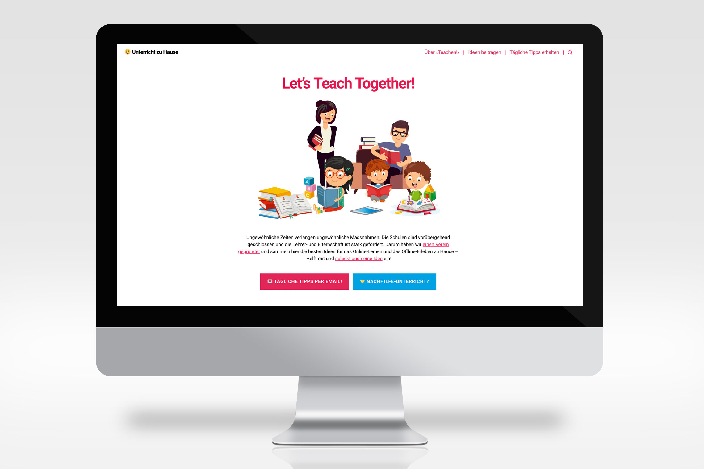 Ungewöhnliche Zeiten verlangen ungewöhnliche Massnahmen. Während der Corona-Pandemie wurden die Schulen vorübergehend geschlossen und die Lehrer- und Elternschaft durch diese neue Situation und dem Homeschooling stark gefordert. Deshalb wurde ein Verein gegründet und eine Onlineplattform entwickelt, um die besten Ideen für das Online-Lernen und das Offline-Erleben zu Hause zu sammeln. atelier w gestaltete die Website auf ehrenamtlicher Basis.